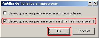 Seleccione Desejo que outros possam imprimir na(s) minha(s) impressora(s) e faça clique em OK.