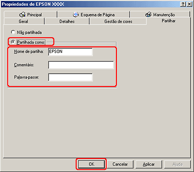Estas instruções explicam como configurar a impressora para que possa ser partilhada por outros utilizadores na rede.