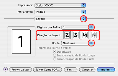 Seleccione entre as definições apresentadas em seguida para a impressão de Páginas por Folha: