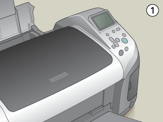 Certifique-se de que a impressora está ligada mas que não está a imprimir e, em seguida, abra o suporte de papel, a tampa da impressora e baixe o receptor de papel.