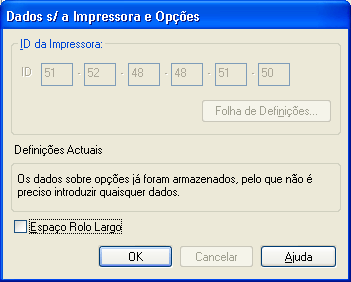 Dependendo da configuração do sistema, as informações apresentadas na caixa de diálogo de informações sobre a impressora e opções podem ser actualizadas automaticamente ou pode ser necessário introduzi-las manualmente.