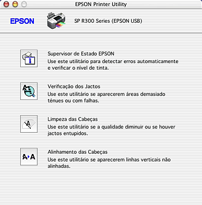 Os utilitários da impressora Epson permitem verificar o estado actual da impressora e efectuar alguns procedimentos de manutenção a partir do computador.