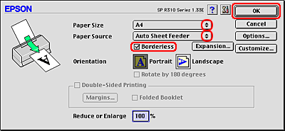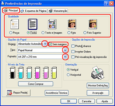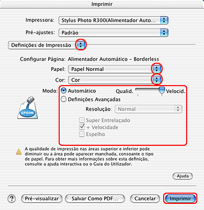 Seleccione Stylus Photo R300 (Alimentador - Sem margens) para a definição Impressora .