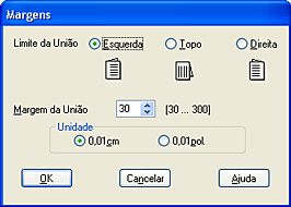 Especifique a margem do papel onde pretende colocar a união. Pode seleccionar de entre as opções Esquerda, Topo ou Direita.