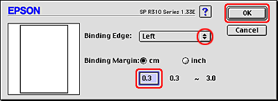 Especifique a largura da margem de união na caixa de texto. Pode definir um valor compreendido entre 0,12 e 1,18 polegadas ou entre 0,3 a 3 cm.