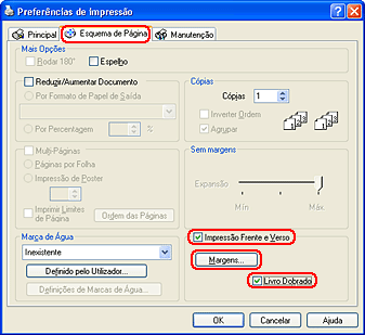 Seleccione a caixa de verificação Impressão frente e verso. Em seguida, seleccione a caixa de verificação Livro Dobrado.