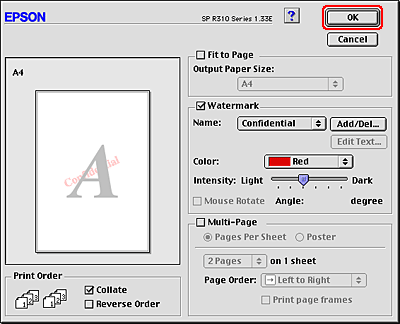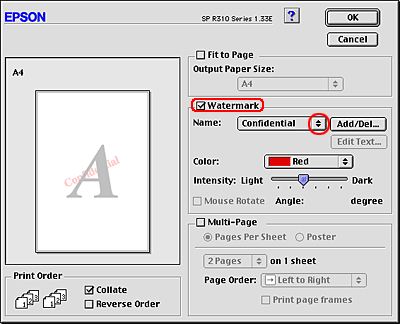 Imprimir a marca de água em Mac OS 8.6 a 9.x