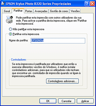 Esta secção indica como configurar a impressora para que possa ser utilizada por outros computadores existentes na rede.
