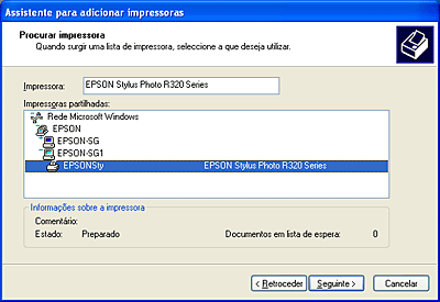 Em primeiro lugar, terá de configurar a impressora como uma impressora partilhada no computador ao qual está directamente ligada. Em seguida, instale o software da impressora em cada computador que terá acesso à impressora a partir da rede.