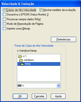 Seleccione esta caixa de verificação para desactivar a monitorização do estado da impressora com o EPSON Status Monitor 3.