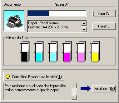 Quando enviar uma tarefa de impressão para a impressora, aparecerá o Medidor da evolução no ecrã do computador.