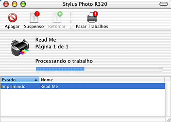 Depois de enviar uma tarefa de impressão, aparecerá a tecla EPSON Stylus Photo R320na barra de ícones. Faça clique nesta tecla para abrir o Gestor EPSON.