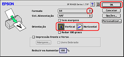 Seleccione Vertical (altura) ou Horizontal (largura) para alterar a orientação da impressão.