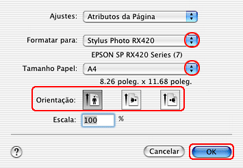 Efectue a definição de formato adequada. Pode também definir um formato de papel personalizado. Para obter mais informações, consulte a secção: