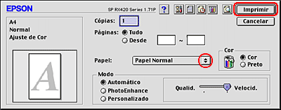 Efectue as definições Papel, Tinta e Modo adequadas. Para mais informações sobre as Definições de Impressão, consulte a ajuda interactiva.