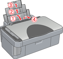 ![]() | Abra o suporte de papel, puxe a extensão para fora e abra a protecção do alimentador. |