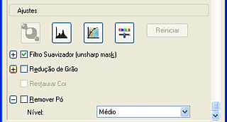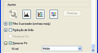 O resultado da função de remoção da sujidade não aparece na imagem pré-visualizada. Observe o resultado na imagem digitalizada.