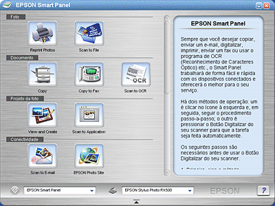 O EPSON Smart Panel inicia e aparece a seguinte janela:
