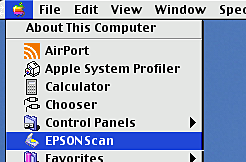 Seleccione EPSON Scan a partir do menu da maçã. A caixa de diálogo Definições Gravar Ficheiro aparece.