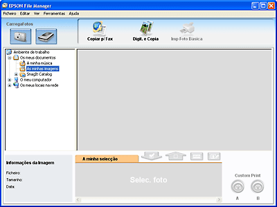 Para mais informações acerca do EPSON File Manager, abra o menu Ajuda e seleccione Manual do Utilizador do EPSON File Manager.