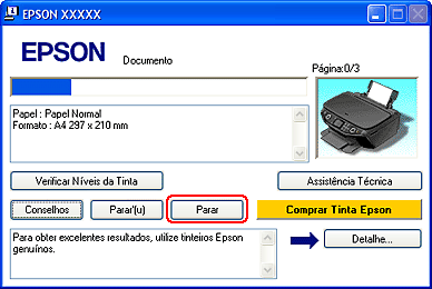 Faça clique na tecla Parar para cancelar a impressão.