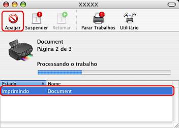 Faça clique na tecla Apagar para cancelar a tarefa de impressão.