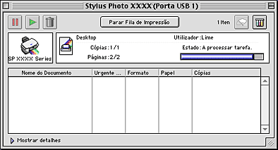 Depois de enviar uma tarefa de impressão para o produto, pode executar o utilitário EPSON Monitor IV para verificar, cancelar ou alterar a prioridade das tarefas de impressão que estão na fila de espera. Este utilitário apresenta também o estado da tarefa de impressão em curso.