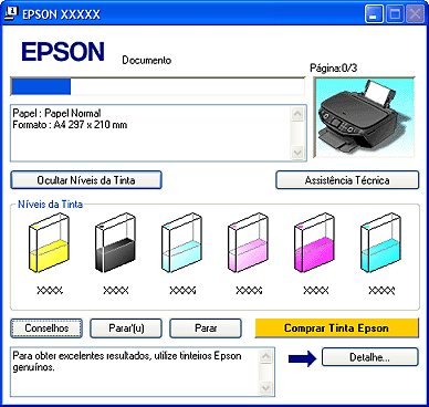 A Epson não pode garantir a qualidade ou fiabilidade de tinteiros que não sejam tinteiros Epson genuínos. Se estiverem instalados tinteiros que não sejam da Epson, o estado do tinteiro pode não ser apresentado.