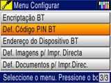 Se tiver seleccionado Paridade como Modo de ligação BT ou Sim como definição de Encriptação BT, tem de inserir a palavra-passe no dispositivo equipado com a tecnologia sem fios Bluetooth para poder comunicar e imprimir a partir deste produto. A palavra-passe predefinida é 0000.