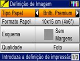 Seleccione a definição de impressão pretendida através das teclas / e, em seguida, altere as opções da definição utilizando as teclas / .