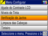 Se o modelo da verificação dos jactos não for correcto, isso pode significar há jactos obstruídos ou que a cabeça de impressão está desalinhada. Para resolver estes problemas, pressione o botão OK e execute as operações apresentadas em Limpar a Cabeça de Impressão. Se o modelo de verificação de jactos for correcto, pressione o botão Cancelar para regressar ao menu de configuração.