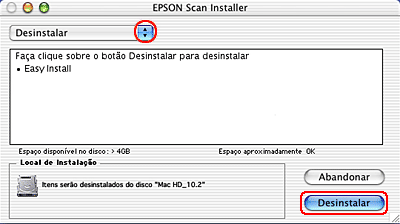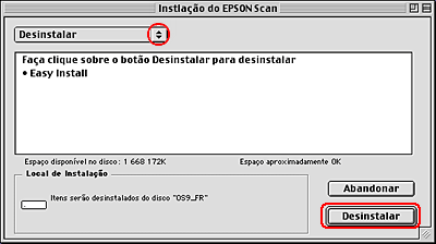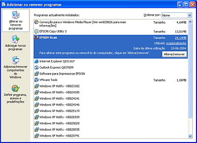 ![]() | Seleccione EPSON Scan na lista e, em seguida, faça clique em Alterar/Remover (Windows XP ou 2000) ou Adicionar/Remover (Windows Me ou 98). |