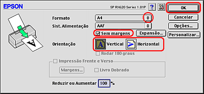 Depois de colocar papel no produto, altere as definições do controlador de impressão para a opção de impressão sem margens.