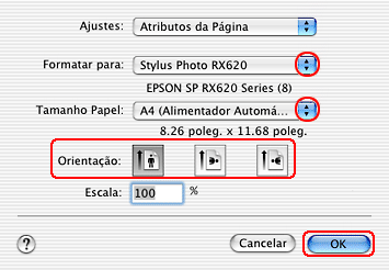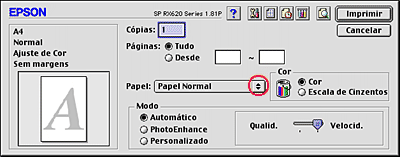 Seleccione Stylus Photo RX620 para a definição Impressora.