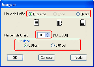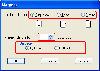 Especifique a margem do papel onde pretende colocar a união. Pode seleccionar as opções Esquerda, Topo ou Direita.
