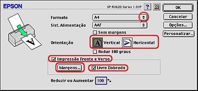 Para imprimir as páginas ímpares e as páginas pares em lados opostos da folha, execute as seguintes operações: