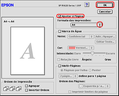 A função Ajustar à Página ajusta automaticamente as imagens ou texto ao formato de papel que seleccionou no controlador de impressão, ou permite redimensionar a imagem manualmente.