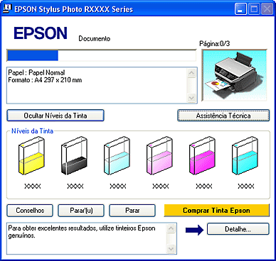 Faça clique na tecla EPSON StatusMonitor. O EPSON StatusMonitor aparece.