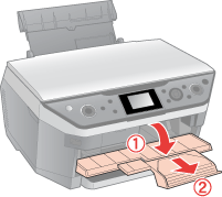 Encoste os guias de papel às extremidades do papel. O papel não será alimentado correctamente se tiver demasiada folga ou ficar apertado.