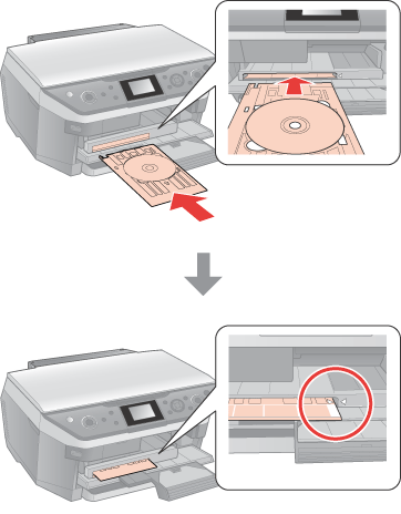 Posicionar um CD/DVDExecute as operações indicadas em seguida para introduzir um CD/DVD na impressora.