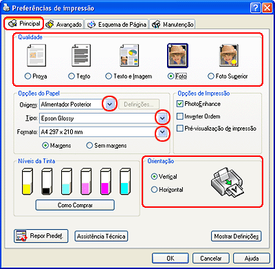 Depois de executar as operações anteriores, efectue um teste de impressão e verifique os resultados antes de imprimir uma tarefa completa. Siga as instruções apresentadas.