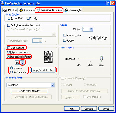 Esta opção permite imprimir as imagens com o formato de um poster aumentando uma página de forma a abranger várias folhas de papel.