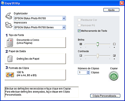 Para obter mais informações, faça clique na tecla Ajuda e visualize o Guia do Utilizador do EPSON Copy Utility.