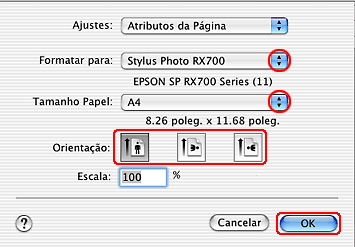 Seleccione o formato de papel do seu ficheiro para a definição de tamanho. Pode também definir um formato de papel personalizado. Para obter mais informações, consulte a secção: