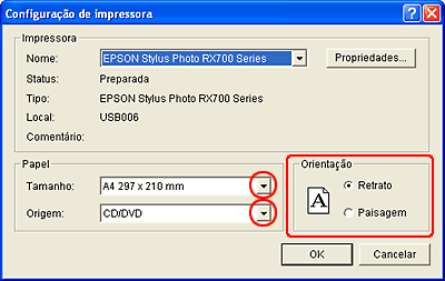 Seleccione A4 (CD/DVD) para a definição de formato de papel.