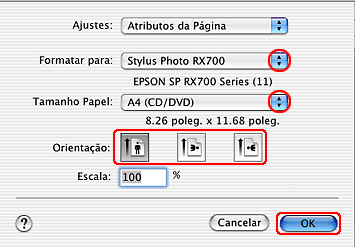 Certifique-se de que a opção Stylus Photo RX700 está seleccionada para a definição Formato.