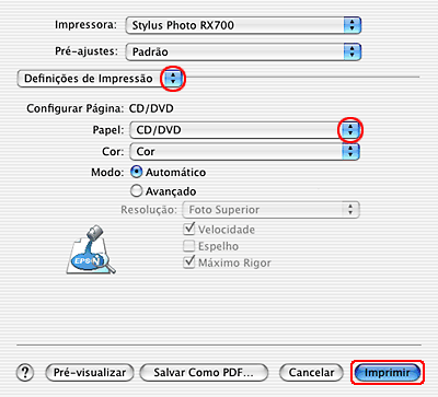 Imprimir num CD/DVD para Mac OS X