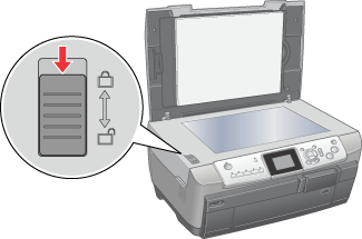 Antes de ligar este produto, certifique-se de que a patilha de protecção se encontra na posição de desbloqueio e que o produto está ligado ao computador.