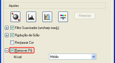O resultado da função de remoção da sujidade não aparece na imagem pré-visualizada. Observe o resultado na imagem digitalizada.