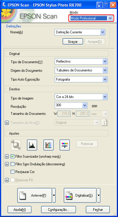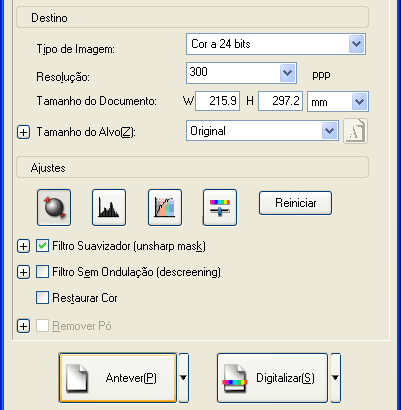 Para melhorar a qualidade das imagens digitalizadas através do EPSON Scan, execute as seguintes operações: